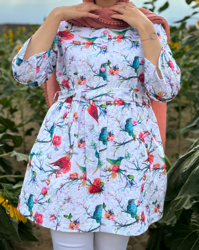 ویژگی: داخلشکامل لایی حریر کار شده به جز استین برای قشنگی و ایستایی بهتر،دارای چهاردکمه در بالاتنه و دارای کمربند،قیمت تولید ،