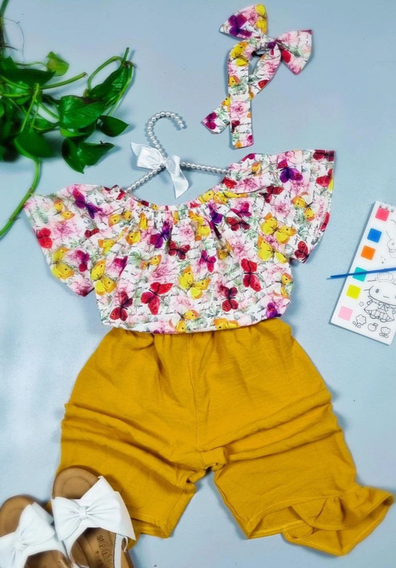 نام: ست بچگانه دخترانه شومیز ،شلوارک و کش مو
