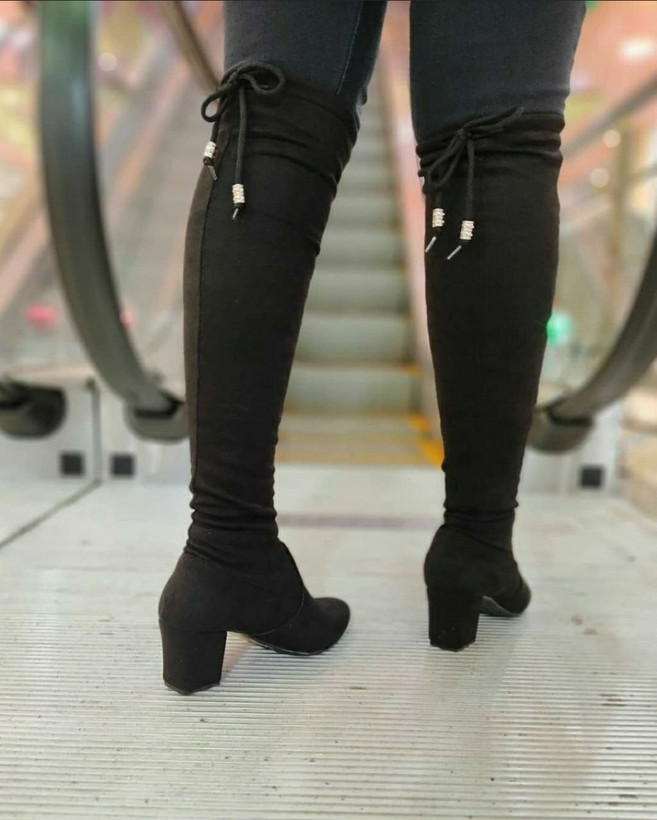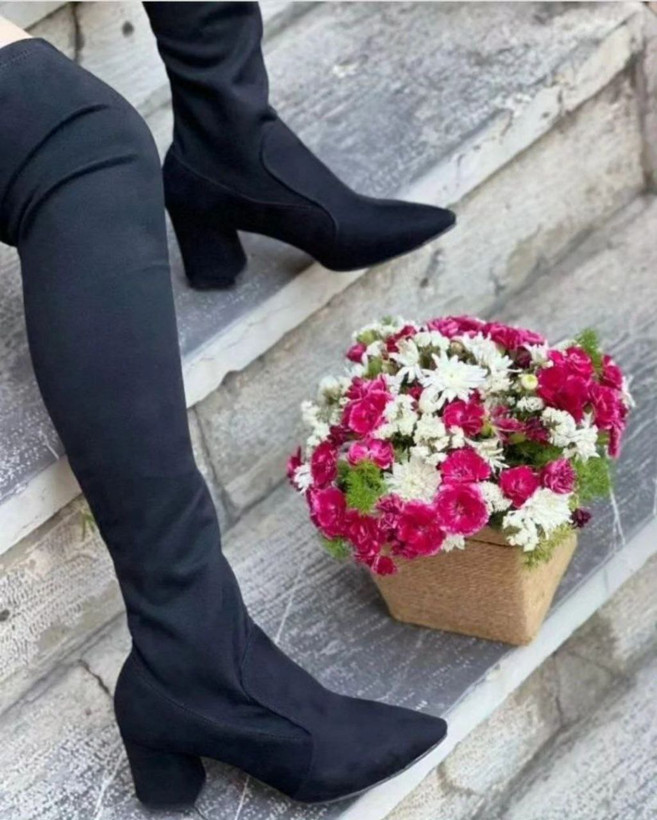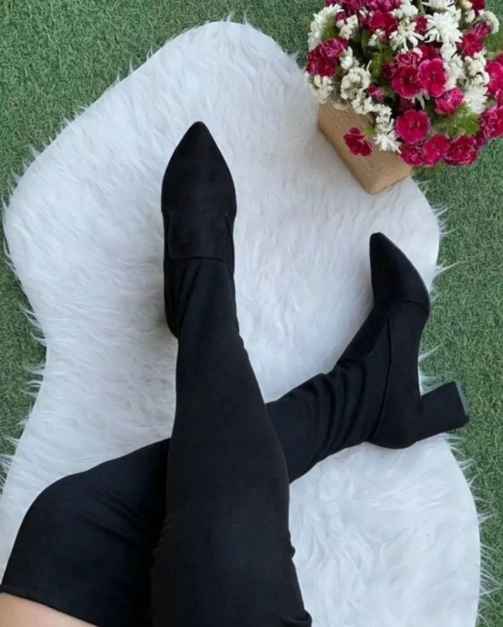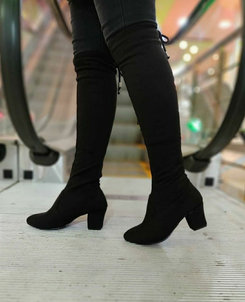 بوت جورابی بلند چرم و سوییت پاشنه دار زنانه/دخترانه پاشنه ۵ سانت زیره دافوس کیفیت اصلی سایزبندی ۳۷ تا ۴۰ قالب استاندارد 🌹