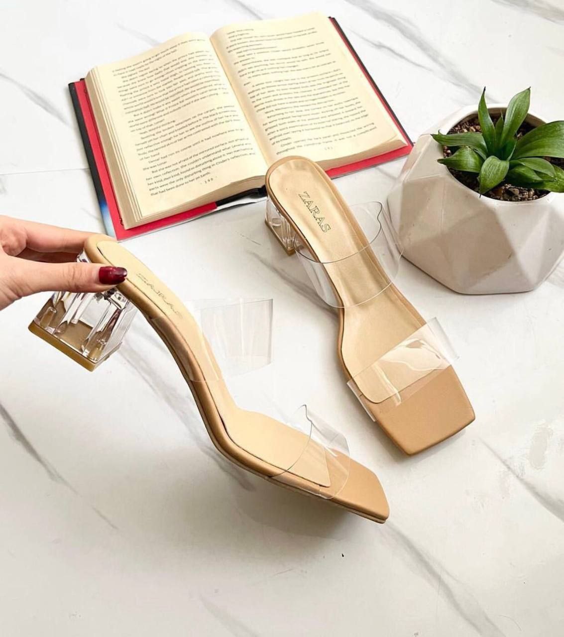 کفش صندل زنانه/دخترانه مدل prada plus پاشنه شیشه ای glass heel پاشنه 5 سانتی طراحی طبق ژورنال روز ترکیه زیره زیر پاشنه ❤️