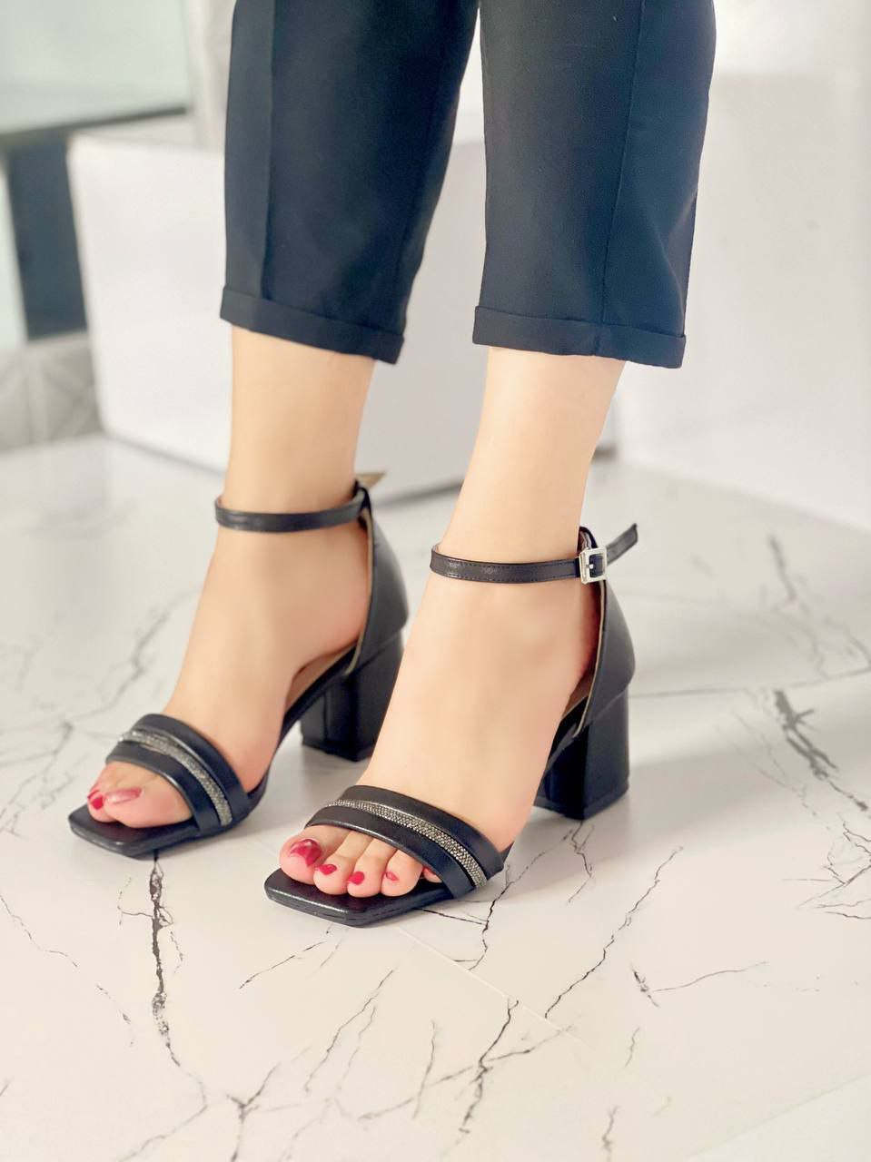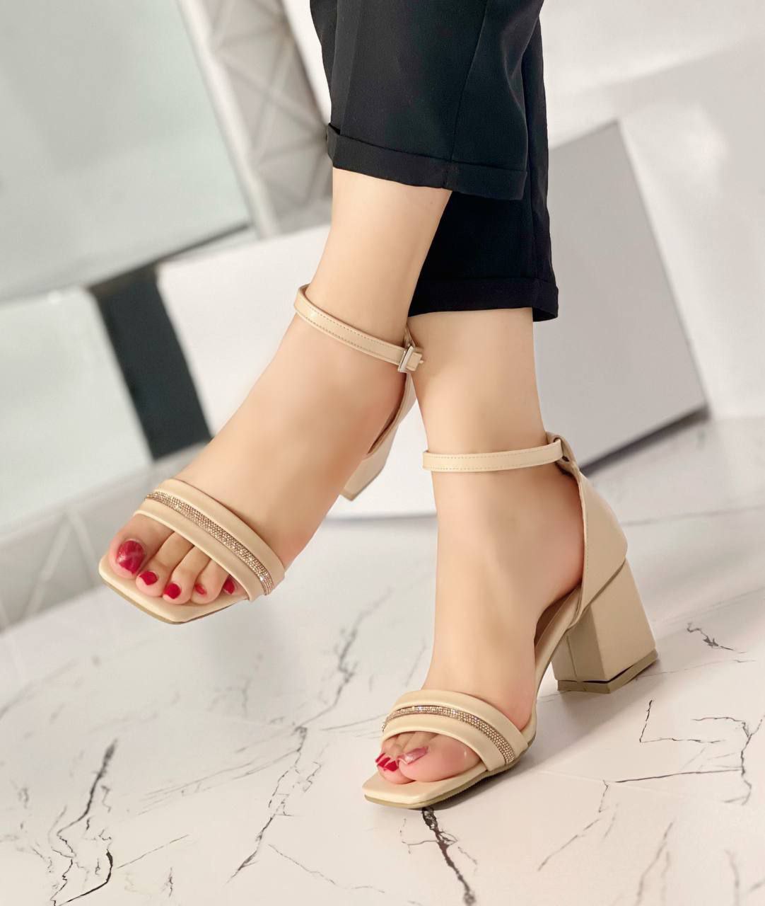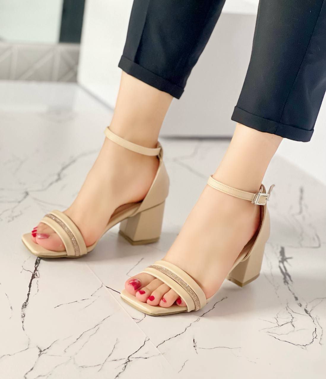 نام: کفش مجلسی زنانه/دخترانه مدل رها سایزبندی ۳۷ تا ۴۰ پاشنه ۵ سانت نگین وارداتی ترک شیک و راحت