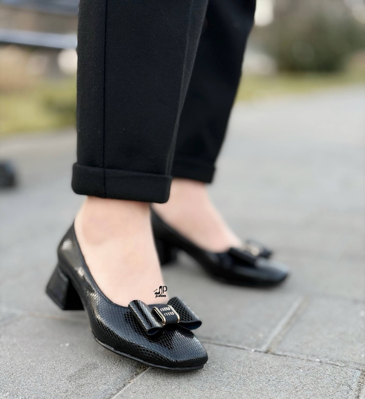 نام: کفش مجلسی زنانه/دخترانه مدل max رویه چرم ورنی ساده و چاپی پاشنه ۴ سانتی مبلی کیفیت بینظیر متریال ترک سایزبندی ۳۸ تا ۴۰