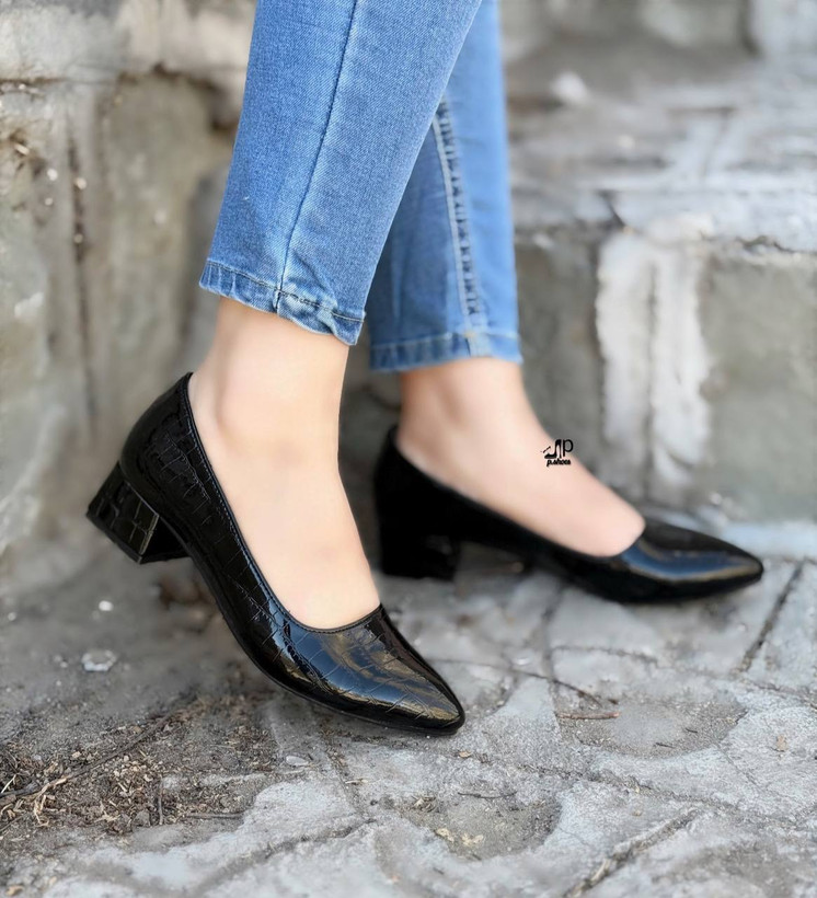 نام: کفش مجلسی زنانه/دخترانه مدل فرشته رویه ورنی چاپی پاشنه دلتا ۳ سانتی سایزبندی ۳۷ تا ۴۱ پاخوری شیک