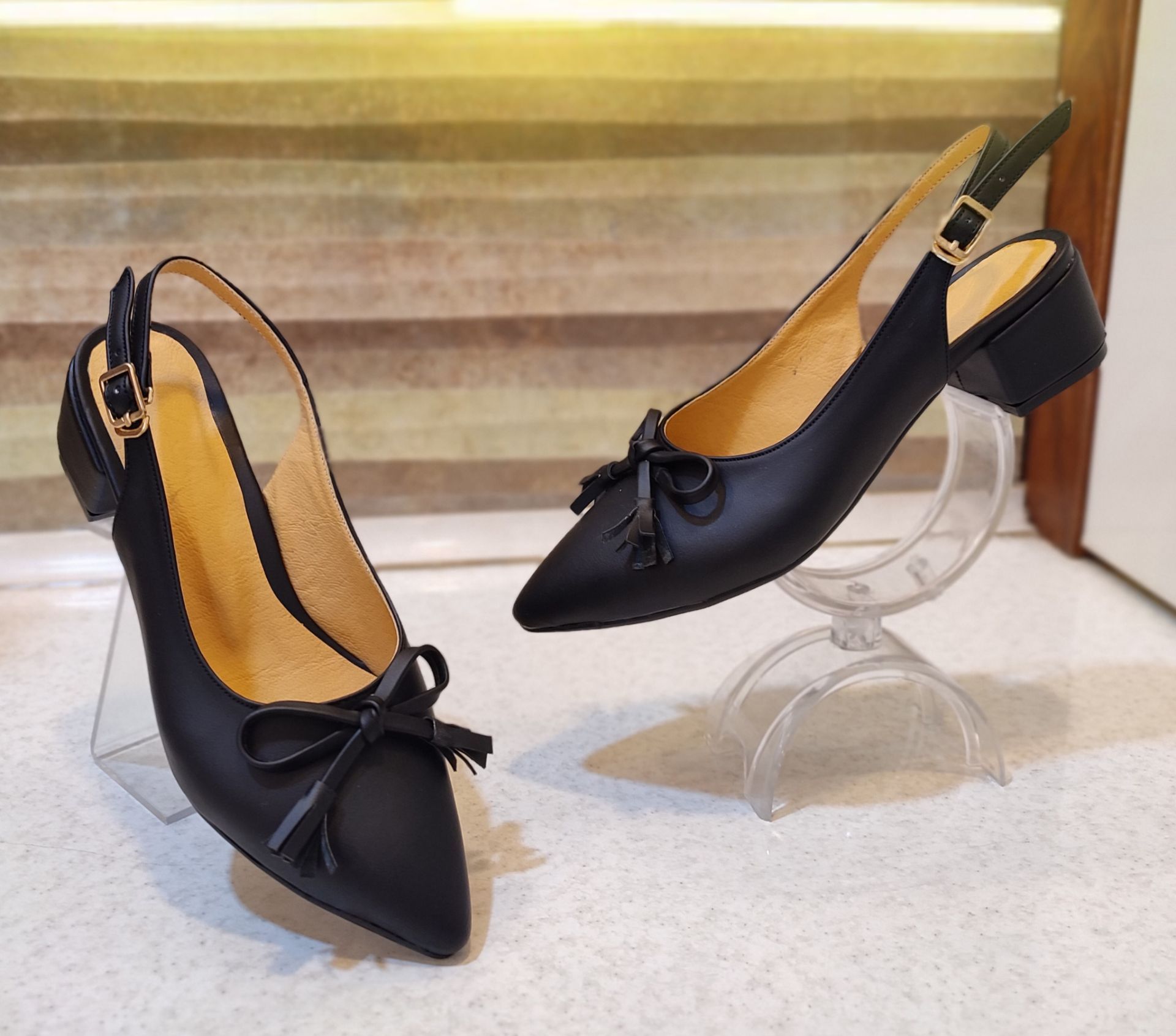 نام: کفش شیک زنانه/دخترانه مدل پاپیون پاشنه ۳ سانت سایزبندی ۳۷ تا ۴۰ رویه چرم بیاله واکس خور کیفیت درجه یک