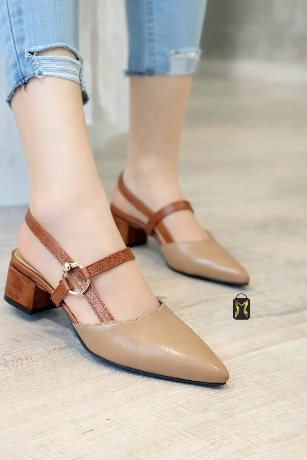 کفش صندل زنانه/دخترانه پاشنه ۵ سانت سایزبندی ۳۶ تا ۴۱ جنس چرم در سه رنگ عسلی و مشکی و کرم 😍